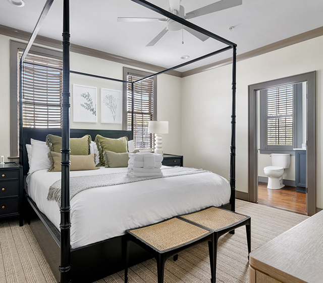 Experience the spacious elegance of Suite C at The Rosemary House, a beautifully preserved historic home in downtown Charleston. With 4 bedrooms and 5 bathrooms, this upper-floor residence offers ample space and comfort for families, groups, or special gatherings.