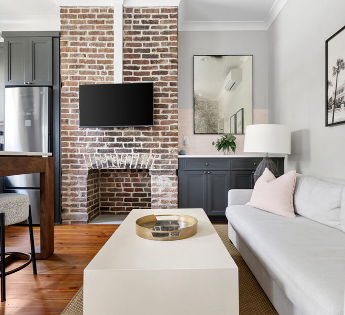 Retreat to Suite B at the Thomas Waring House, a charming 2-bedroom, 2-bath suite tucked within the historic Thomas Waring House. Ideal for couples or small families, this suite offers a quiet, sophisticated space where classic Southern architecture meets modern amenities, creating an unforgettable downtown stay.